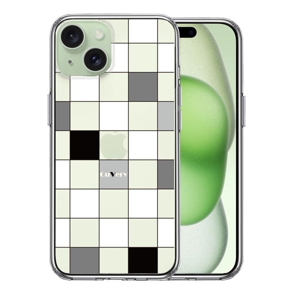 - iPhone15 ケース クリア ブロック チェック 白 黒 スマホケース 側面ソフト 背面ハード ハイブリッド
