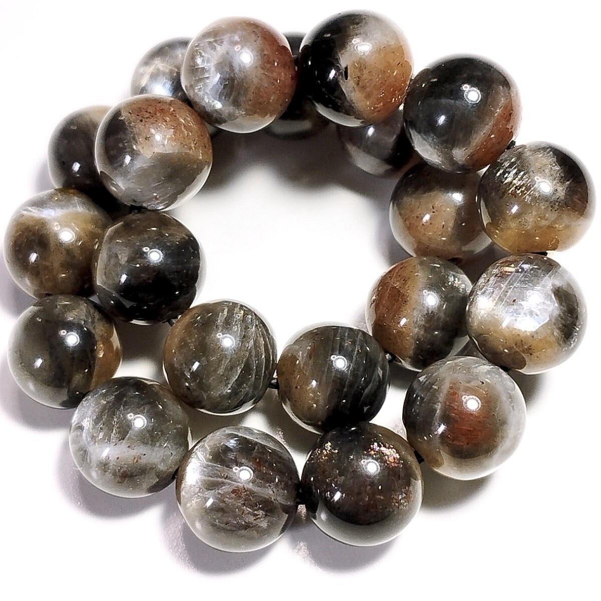 - ②高品質 バイカラー ブラックオレンジサンムーンストーン ブレスレット 9mm 16cm