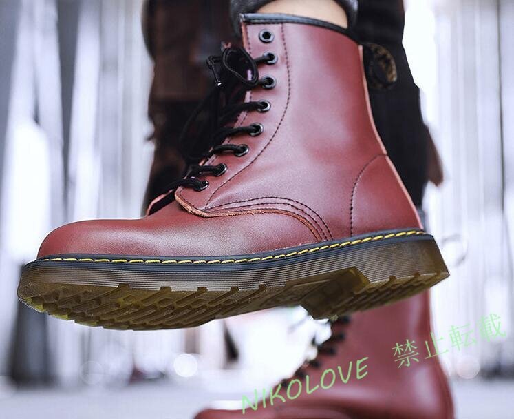 - ショートブーツ メンズブーツ 高級 レザーシューズ 本革 マーティンブーツ 牛革 皮靴 ハイカット 24.0~28.0cm選択可 赤 AB098