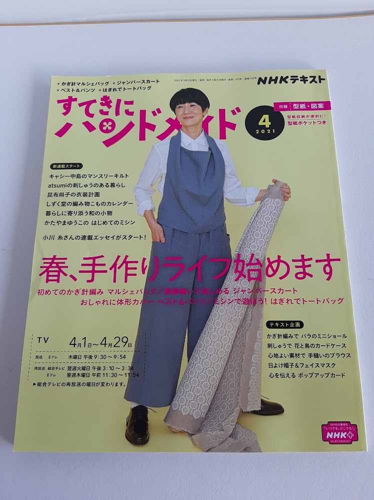 > ★送料込【NHKすてきにハンドメイド2021年4月号】マルシェバッグ/ジャンパースカート/ベスト&パンツ/トートバッグ★型紙・図案【NHK出版】