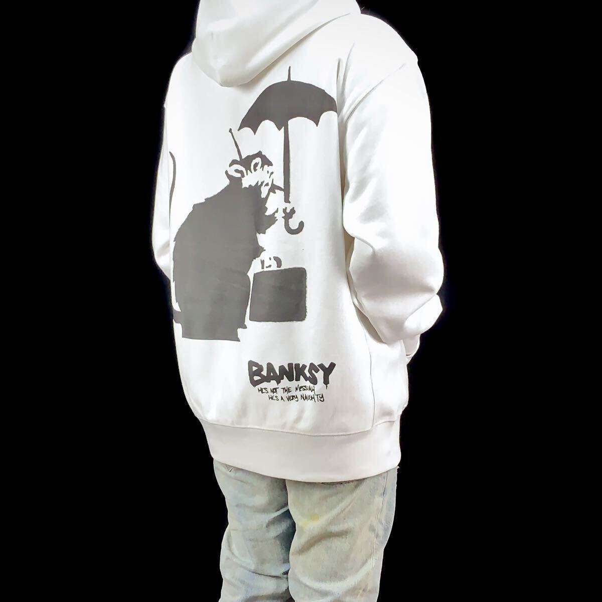 > 新品 BANKSY バンクシー 東京 傘 鞄 バッグ ネズミ マウス グラフィティ バック ビッグ プリント 大きい パーカー オーバーサイズ XXL(3L)