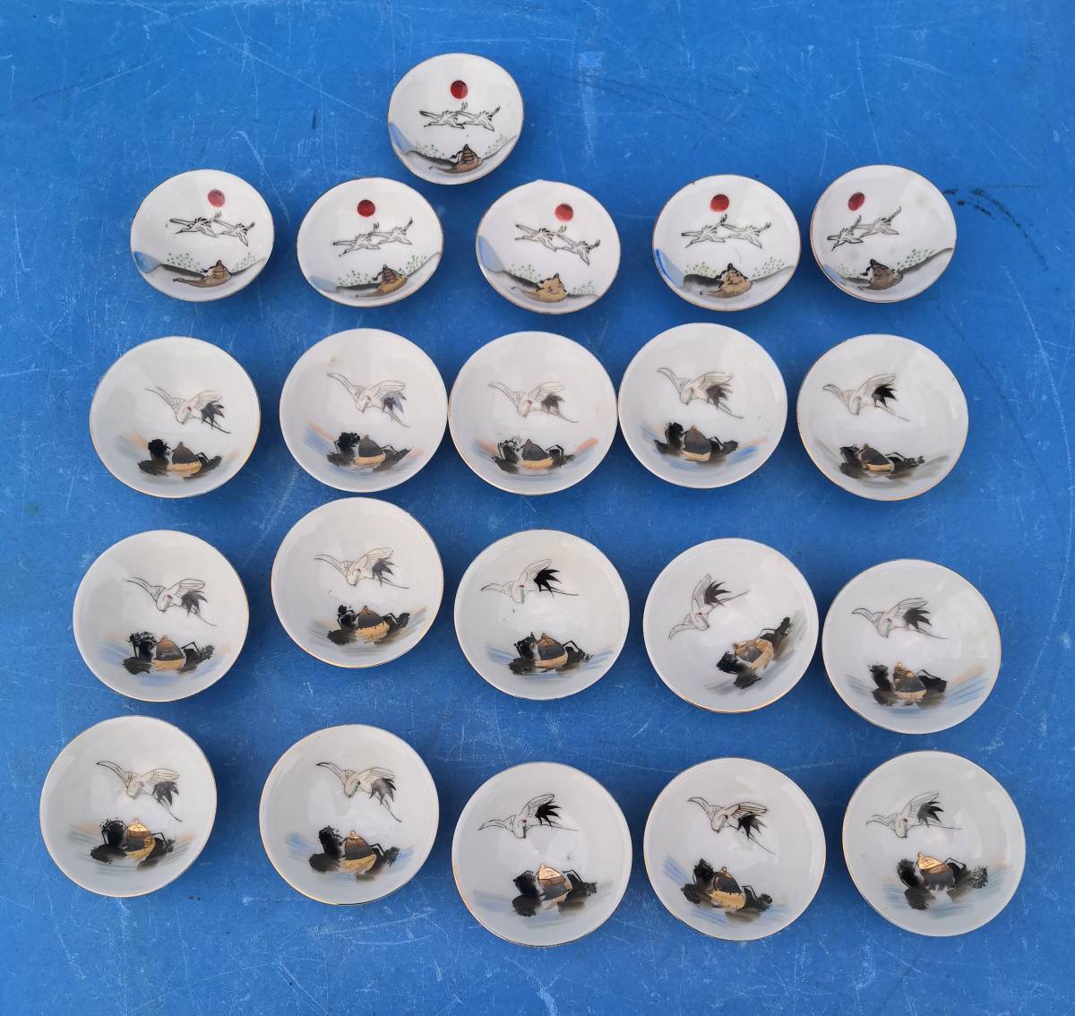 - 昭和レトロ鶴と亀の絵が描かれた盃21個