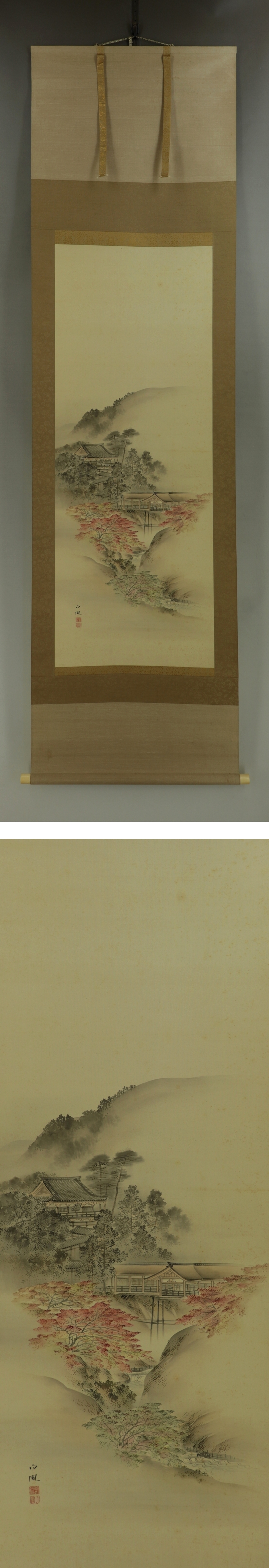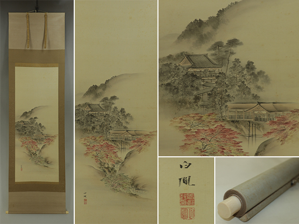 - 【模写】武部白鳳【通天紅楓図】◆絹本◆識箱◆掛軸 s01095