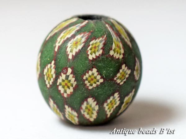 - ●わくわくとんぼ玉★得割!ジャワモザイクチェッカー模様緑色玉H 蜻蛉玉 トンボ玉 アンティークビーズ 【E15027H】