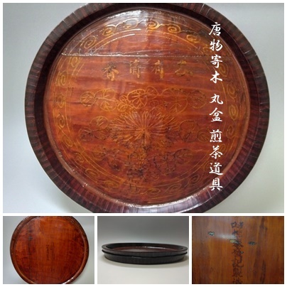 - 【T-148】唐物寄木 丸盆 直径約32cm 煎茶道具