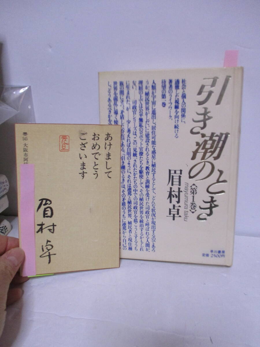 > 眉村卓(2019年没)「引き潮のとき」1巻 早川書房 定価2500円 1988年3月15日☆初版 サイン入り年賀状付 読了日書き込み