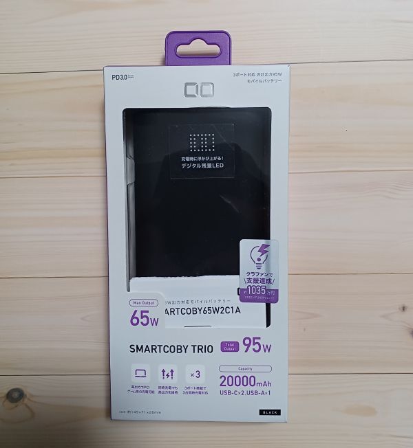 > SMARTCOBY TRIO 合計3ポート 最大65W入出力 合計95W出力 20000mAh モバイルバッテリー