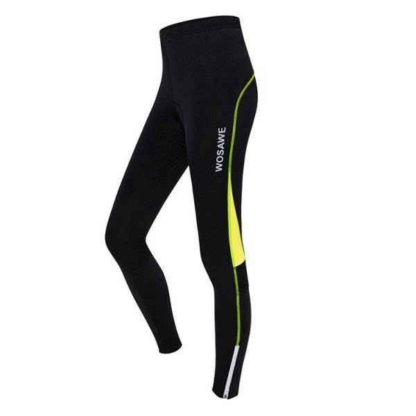 - サイクルレーサーパンツ レディース タイツ ロング お尻パット入り サイクリングポケット自転車ウエア 黒緑 [サイズ 色 選択可] HE749