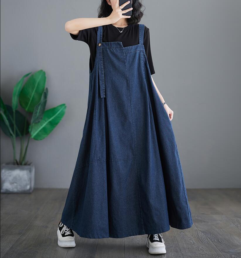 - 同梱1万円送料無料■ジャンパースカート デニムワンピース サロペットスカート キャミワンピース ロングワンピ オーバーサイズ■ネイビー