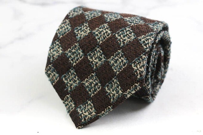 - ヒューゴボス シルク ウール チェック柄 高級 イタリア製 ブランド ネクタイ メンズ ブラウン 良品 HUGO BOSS ドイツ高級紳士服ブランド