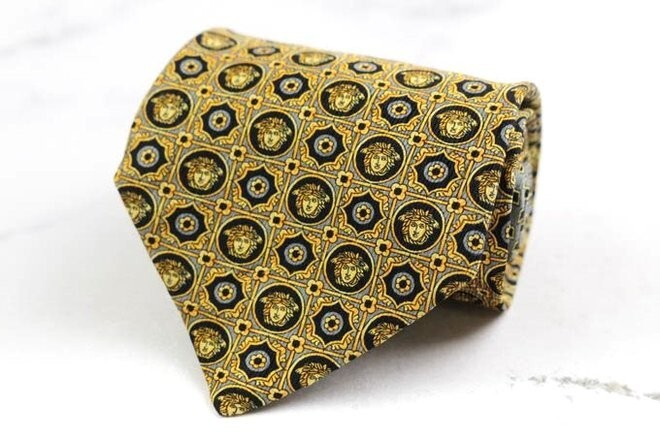 - ジャンニ・ヴェルサーチ シルク メドゥーサ 花柄 高級 チェンジタイ イタリア製 ブランド ネクタイ メンズ イエロー 良品 GIANNI VERSACE