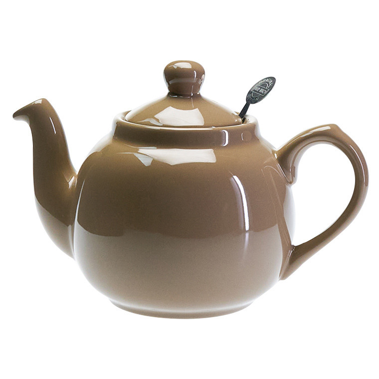 - 紅茶の本場イギリスの家庭用 ティーポット 2杯分600ml トープ せっ器 ころんとした丸いフォルムが可愛らしい