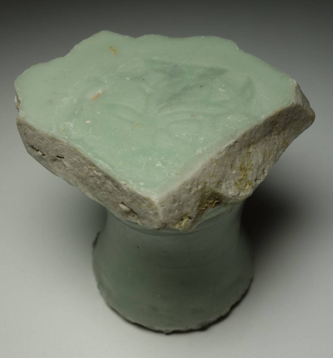 - 南宋期 福建琉球域古窯 古青磁 蓮花図 馬上杯サンプル 古玉の如く 蓋置 海のシルクロード