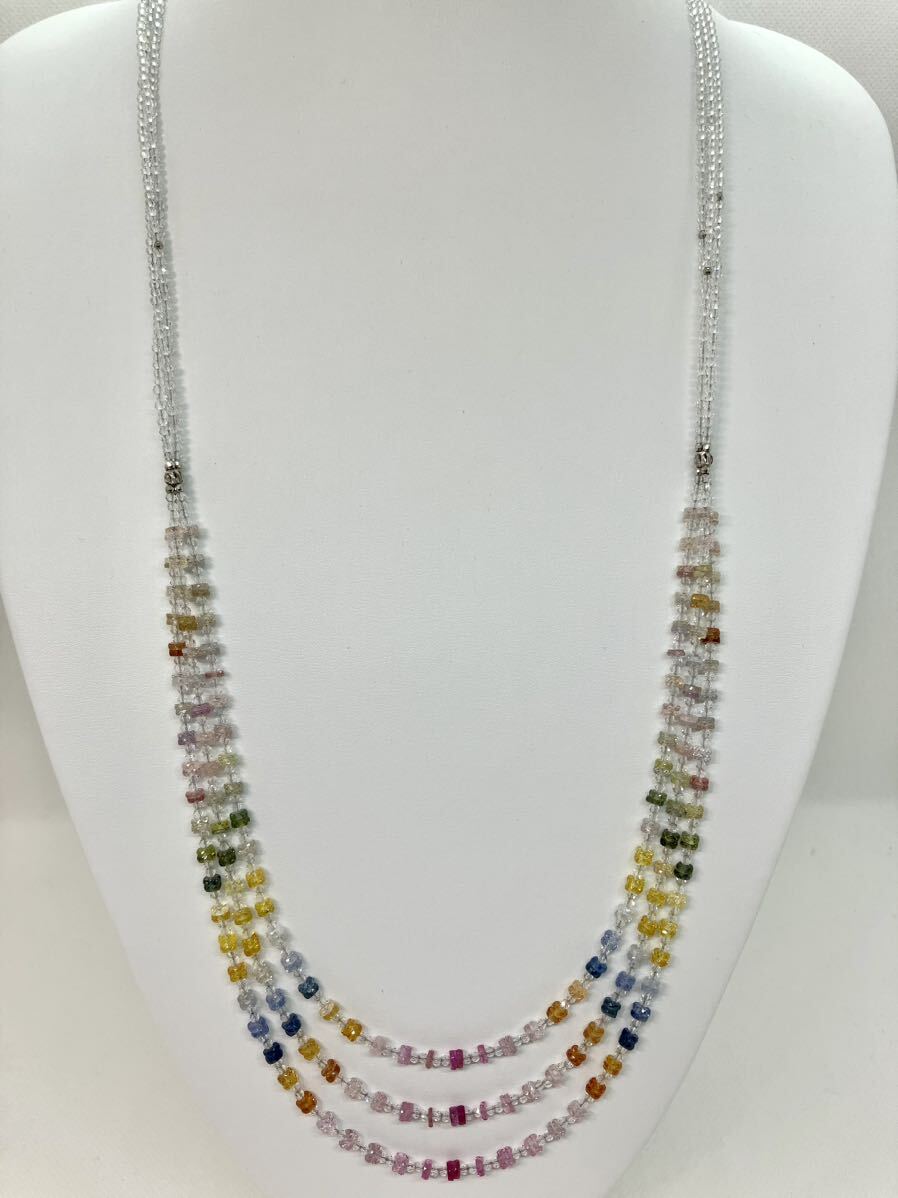 - 【新品】マルチカラーサファイア三連ネックレス*天然石*9月の誕生石*カラーストーン*一点もの*ホワイトトパーズ*WGK18