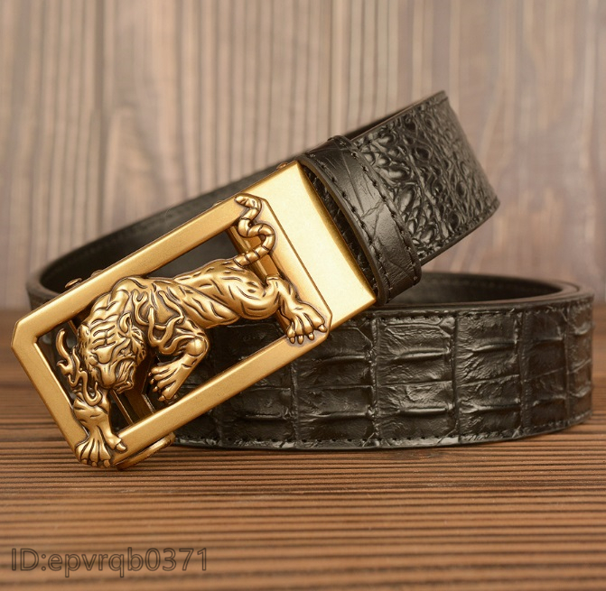 - ベルト 新品 バックル トラ レザーベルト ワニ柄 メンズ オートロック式 幅3.5センチ 柄物 紳士用 /黒