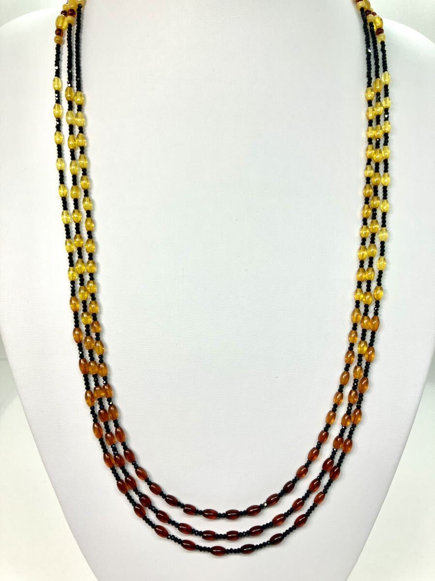 - 【新品】琥珀×ブラックスピネル3連ロングネックレス*天然石*こはく*コハク*リトアニア産*ミルキー*グラデーション