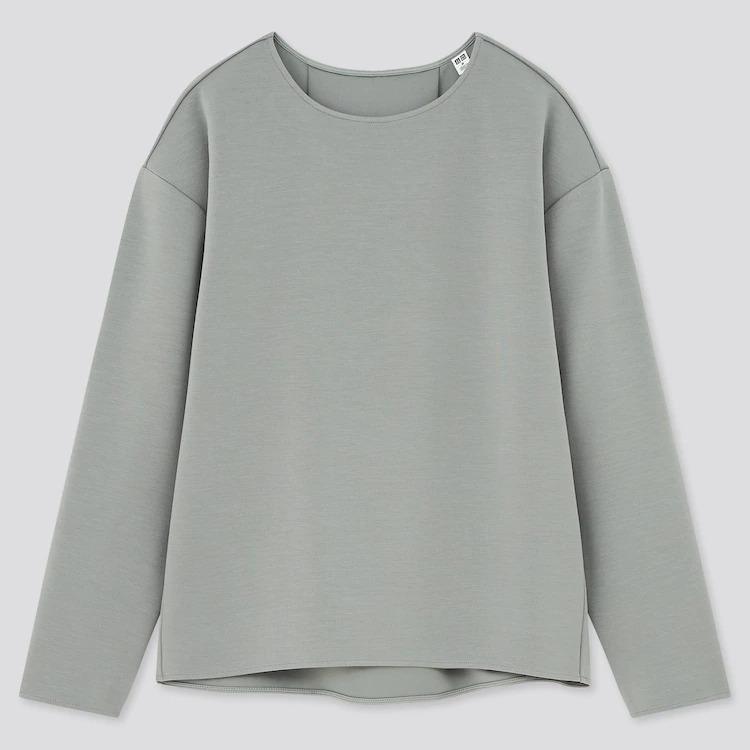> 大幅値下げ!新品タグ付き ユニクロ UNIQLO ストレッチダブルフェイスプルオーバー(長袖)セットアップ可能 ストレッチ素材 Lブルーグリーン