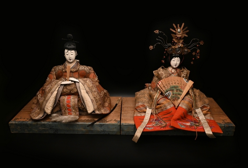 - 古今雛 享保雛 ■江戸時代か 内裏雛 [ 親王お雛 ] 鳳凰刺繍 ■ 大型 お雛様 古い 時代 雛人形 骨董 木箱入り №9685■