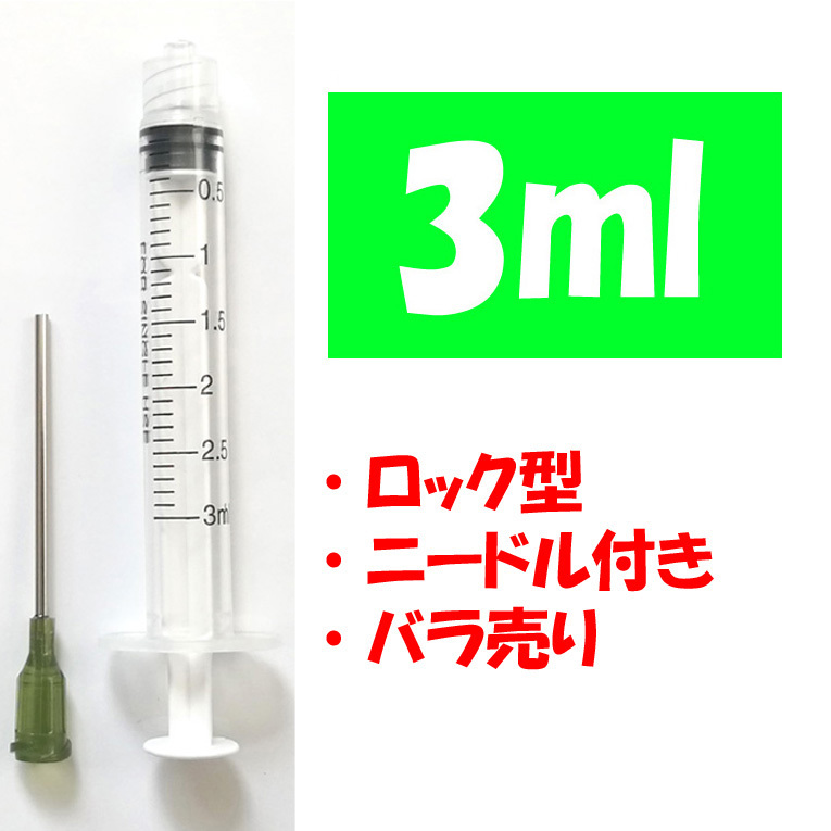 - 3ml ロック型 ばら売り 補充インク用 シリンジ 注射器 プリンター 針付 交換 化粧水 香水 詰め替え 実験 工作 計量 ニードル付き