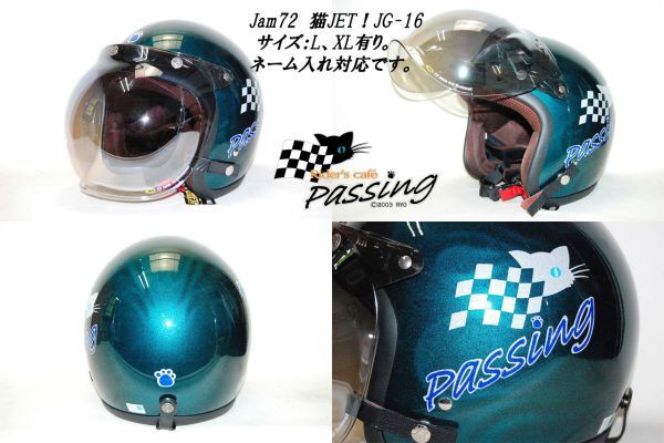 - passing猫ちゃんヘルメットシールド付き:3Dメタリックブルー JG-16