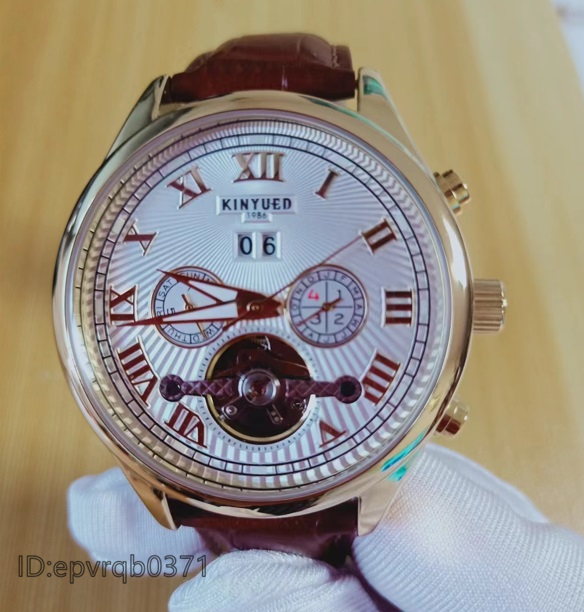 - 高級腕時計 機械式自動巻 メンズウォッチ トゥールビヨン カレンダー 曜日表示 本革ベルト 夜光表示 紳士 新品未使用/ブラウン