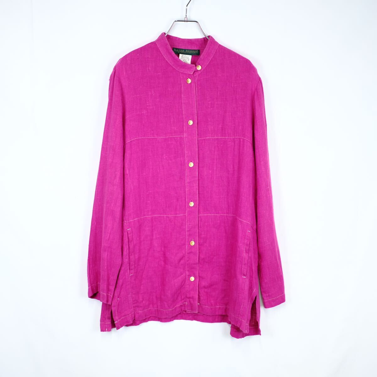 - 【1990s】ウクライナ製 オーバーサイズ リネンシャツ スタンドカラー ユーロ 古着屋 ピンク スタンドカラー マオカラー ノーカラー