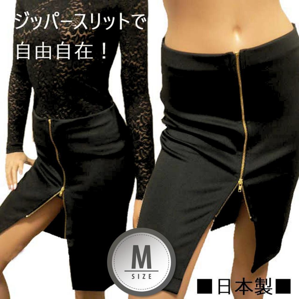 > Mサイズ 黒 ひざ丈スカート タイトスカート ペンシルスカート スリットスカート ミニスカート ウエストゴム OL 制服 made in Japan