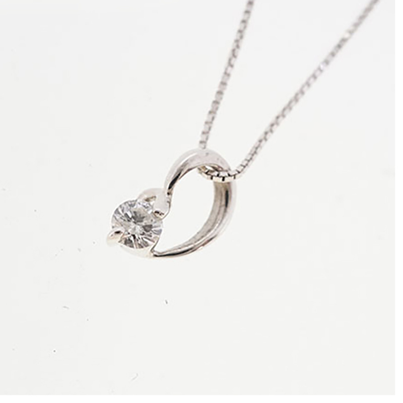 - 【jv528】ダイヤモンド ネックレス/0.07ct/K10WG ホワイトゴールド/一粒ダイヤ/未使用