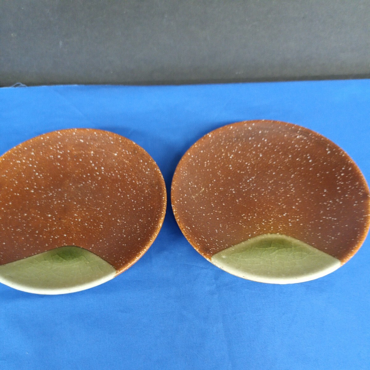 - 昭和レトロ■土物 平皿(14.2) 2枚 プレート ペア 食器