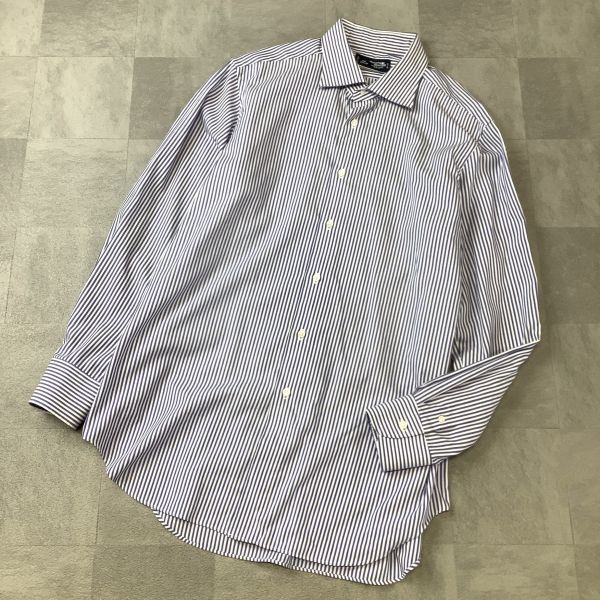 > 美品 Maker’s Shirt メーカーズシャツ 鎌倉シャツ ストライプ 長袖シャツ メンズ ブルーストライプ 16 1/2 -34