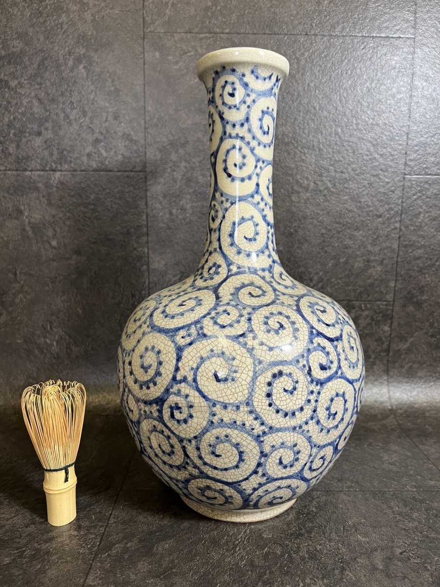 『信楽焼 蛸唐草 大徳利 花瓶 壺 染付 高さ37cm』