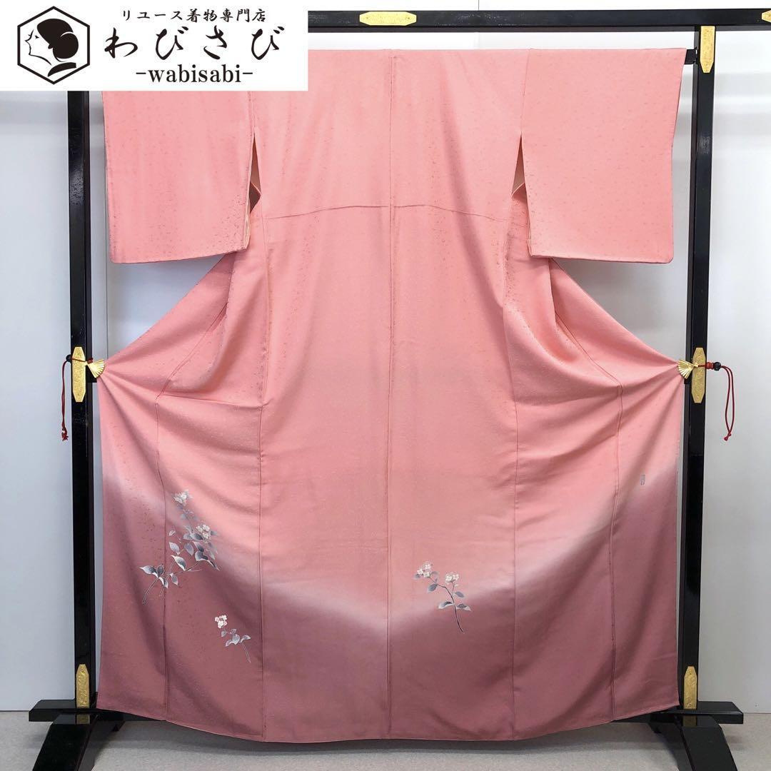 中紅色ベースのお色味に暈し、上品な花柄模様がデザインされた素敵な柄裄のお品でございます。