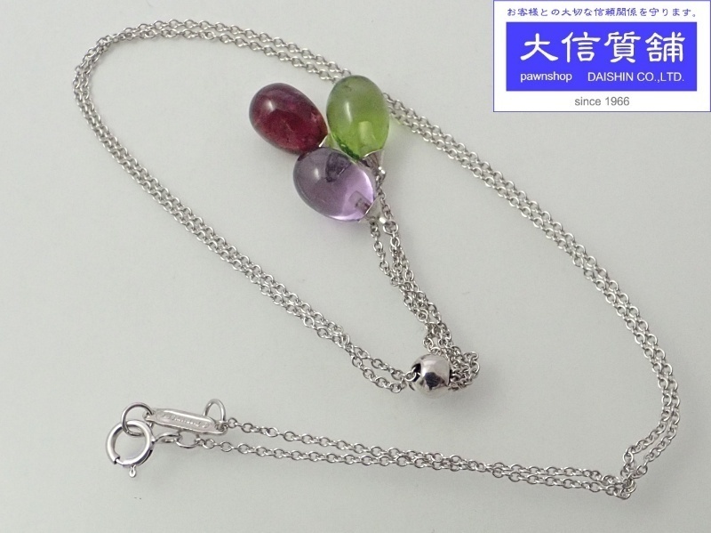 > TIFFANY ティファニー AU750 ホワイトゴールド マルチストーン ネックレス レインボー 3ドロップス 4.4g 中古A- 【送料無料】 C-8135