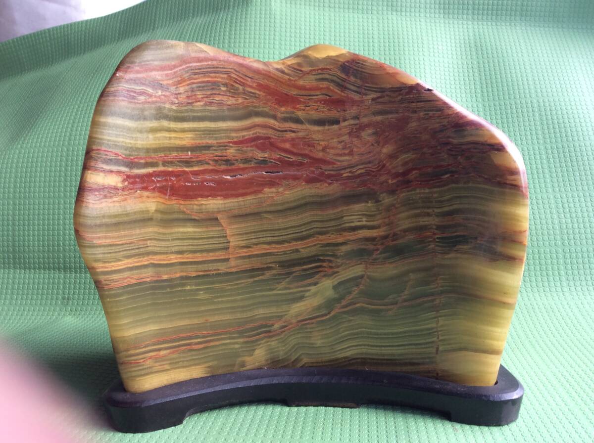 - 鑑賞石 縞瑪瑙 レインボージャスパー五色石 自然石 台座付き