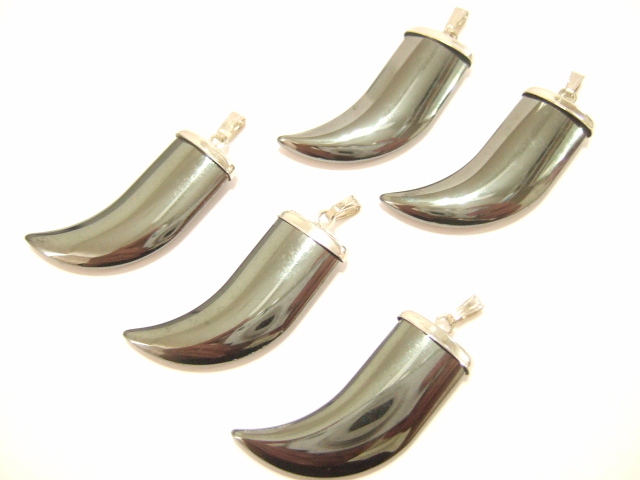 - 横浜最新 天然石ヘマタイト♪魅惑の牙ペンダントヘッド 5個 メンズレディース 守護魔除け パーツ部品卸し 送料220円ξbalnξξ118a