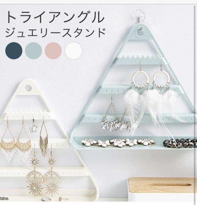 > ピアススタンド イヤリング 指輪 ネックレス アクセサリー収納 インテリア トレイ付き 三角 トライアングル ピンク