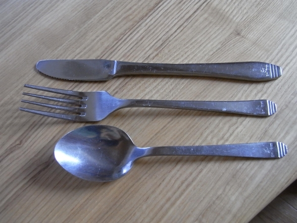 - キズだらけ・中古☆エミレーツ航空 機内カトラリー ナイフ フォーク スプーン3点セット