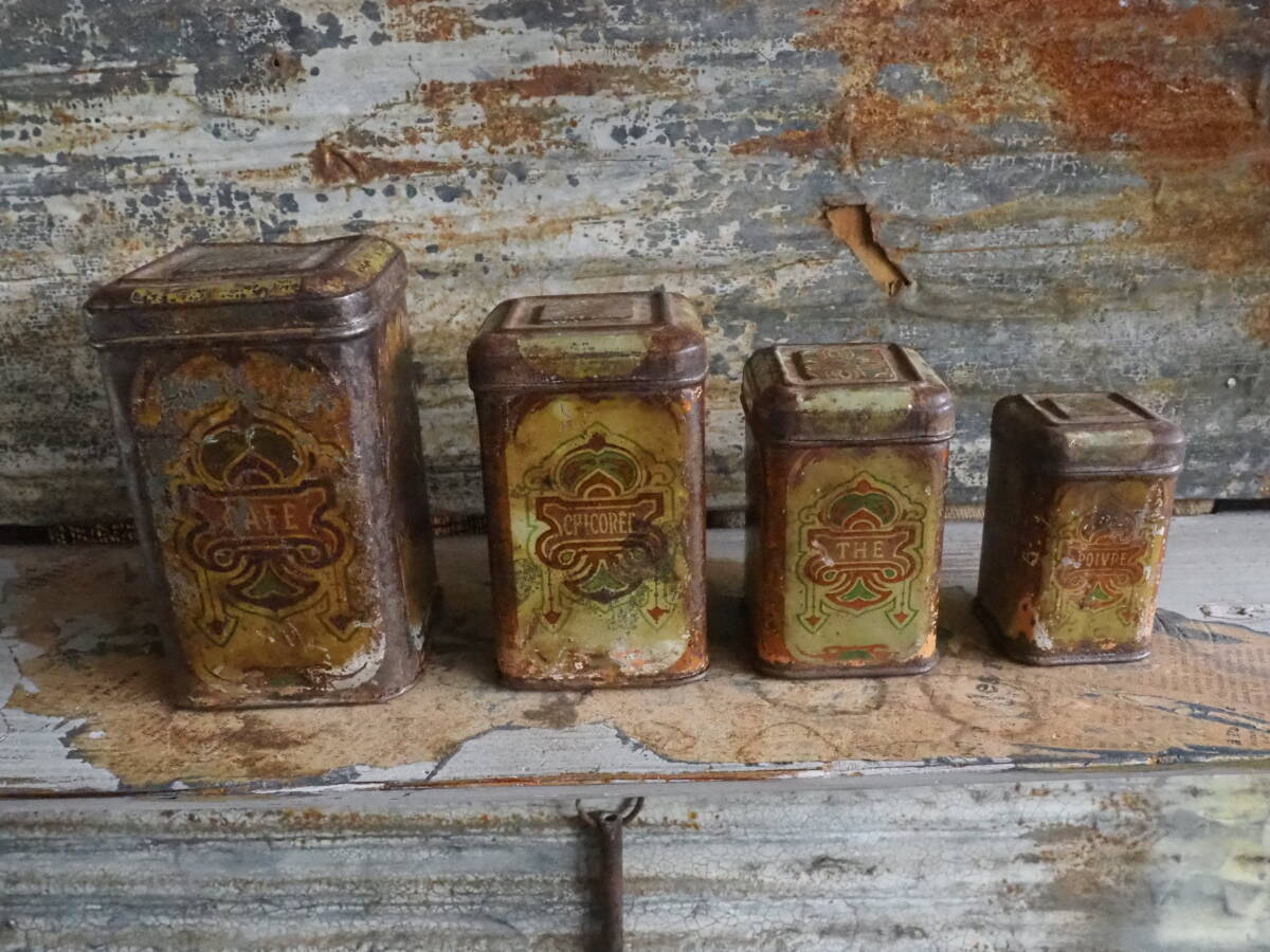 - 【フランス蚤の市入れ子ブリキ缶】マトリョーシカ紅茶コーヒーティン缶キッチン古道具アンティーク骨董インテリアカフェインダストリアル