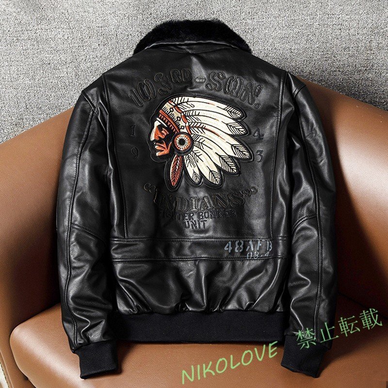 - LB880 A-2 フライトジャケット 羊革 シープスキン 中綿 本革 レザージャケット コート ウール襟 刺繍 防寒 革ジャ ン 2XLサイズ