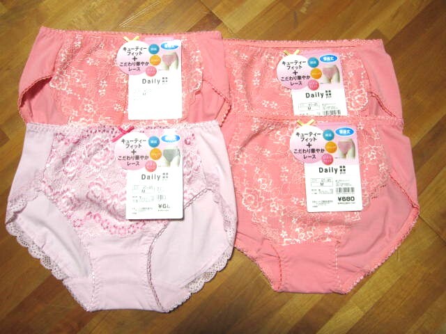 - *送料無料*新品*M*ショーツ4枚*普通丈*キューティーフィット+華やかレース*綿混*ピンク*