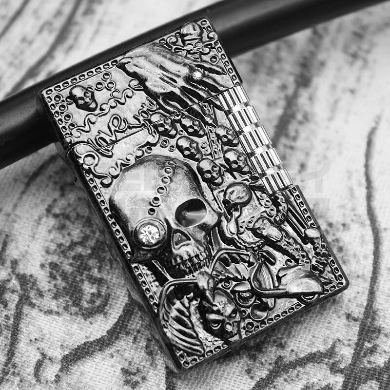 > スカル フリント ガスライター ビンテージ クリスタル ローラー クロム