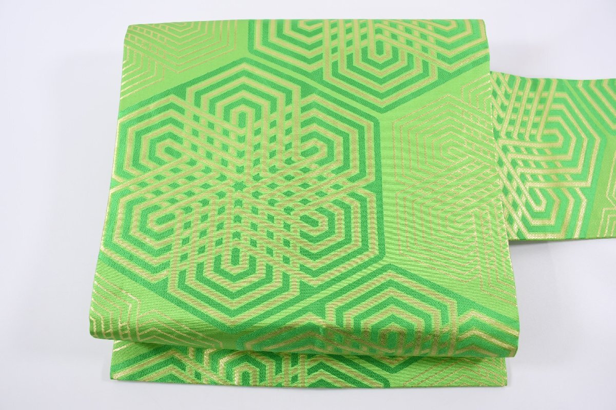 - 名古屋帯 黄緑色 亀甲 帯丈350cm ★着物屋 ne-9546 桜庭呉服店