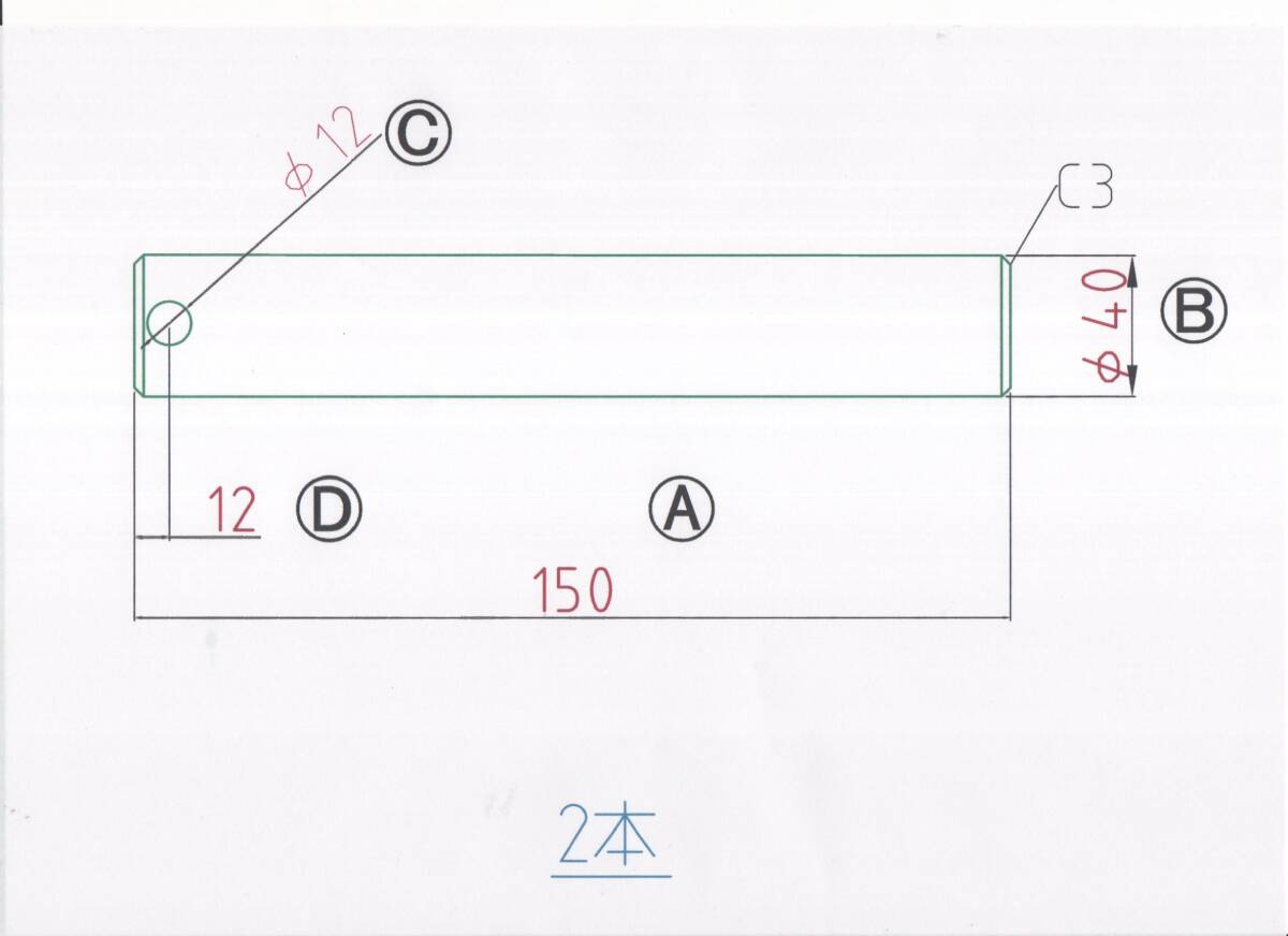- NO1770 Φ40用 全長150mm バケットピン 2本セット