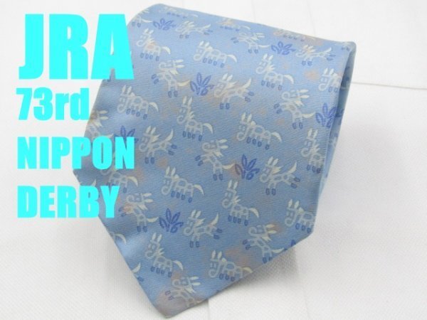 - 【JRA 日本ダービー 】OB 696 JRA 第73回 日本ダービー Nippon Derby ネクタイ 水色系 アニマル ド柄 プリント