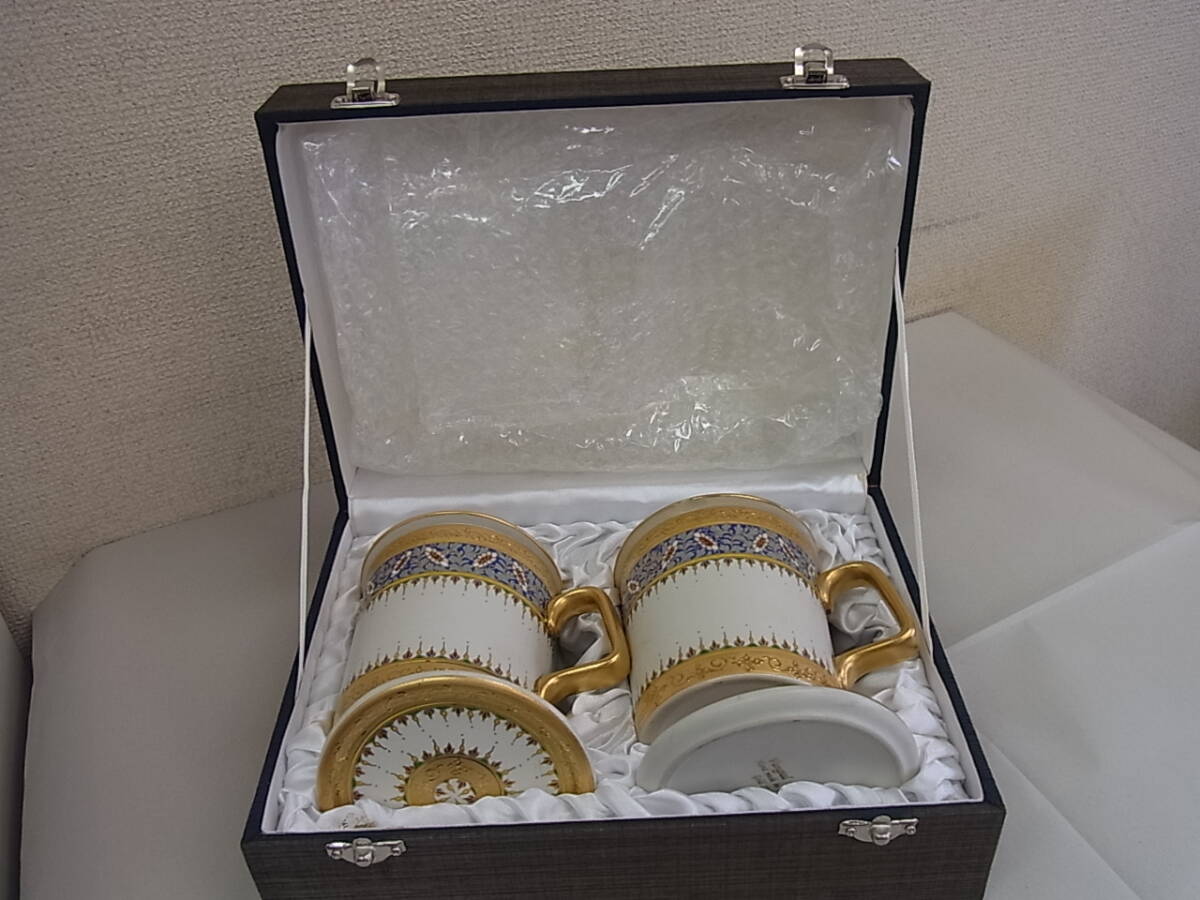 > 160429K13-0430K-A1□ベンジャロン焼□タイ カップ&ソーサー 蓋付き 金彩 ペア 箱付 蓋裏一部カケ有り/中古品