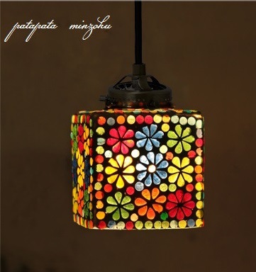 - フラワーモザイク ランプ スクエア ペンダントライト ペンダントランプ ステンドグラス 照明