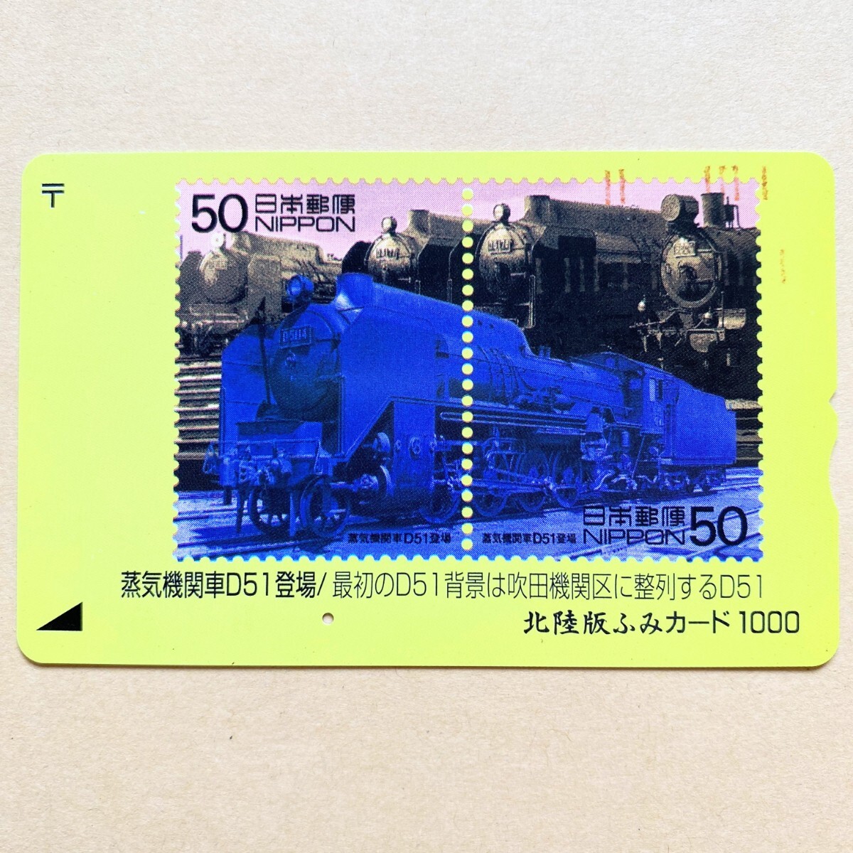 - 【使用済】 ふみカード 北陸版 蒸気機関車D51登場 最初のD51背景は吹田機関区に整列するD51
