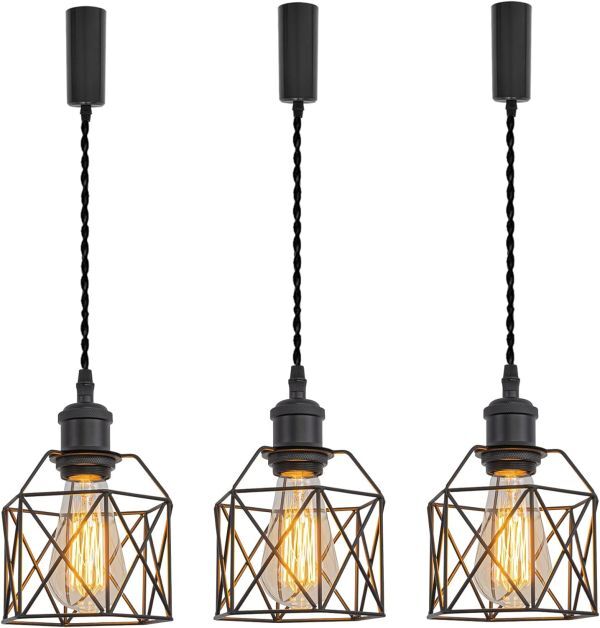 - ケビン 3個パック レトロペンダントライト 長さ調節可 コード収納カップ付 インテリア照明 北欧 E26 LED 【マットブラックソケット】