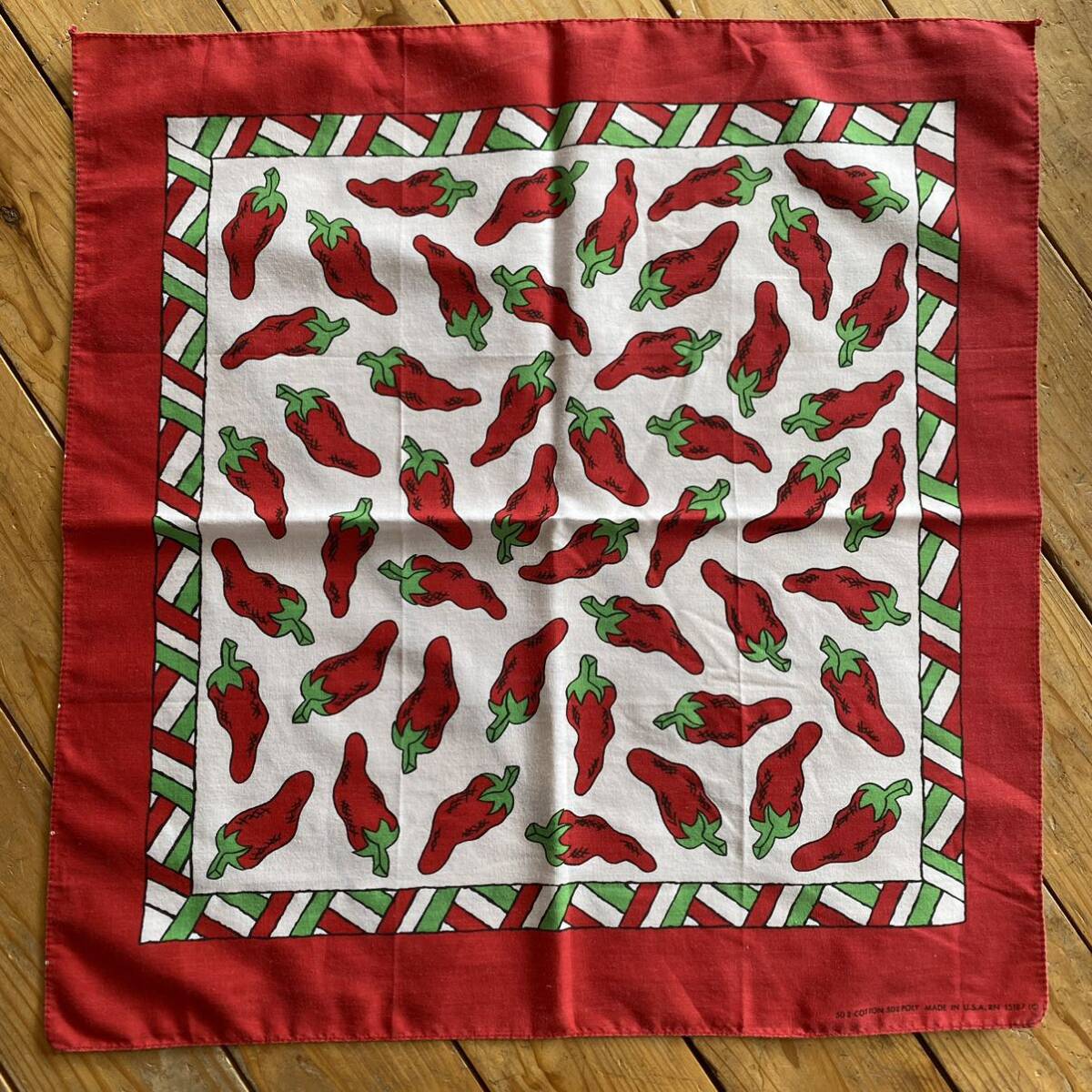 - 送料無料 Vintage ホット チリ ペッパー バンダナ 唐辛子 総柄 Made in USA メキシカン ハンカチ アメリカ仕入れ 雑貨 ヴィンテージ A0995