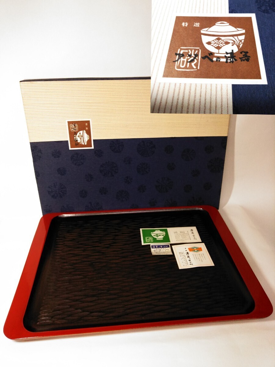 > 京都 漆器のアソベ 象谷 縁朱 長手盆 天然木 漆芸 茶盆 運び盆 給仕盆 42cm (検索) 工芸品 美術 古玩 道具 茶道 茶器 彫刻 角盆 トレー